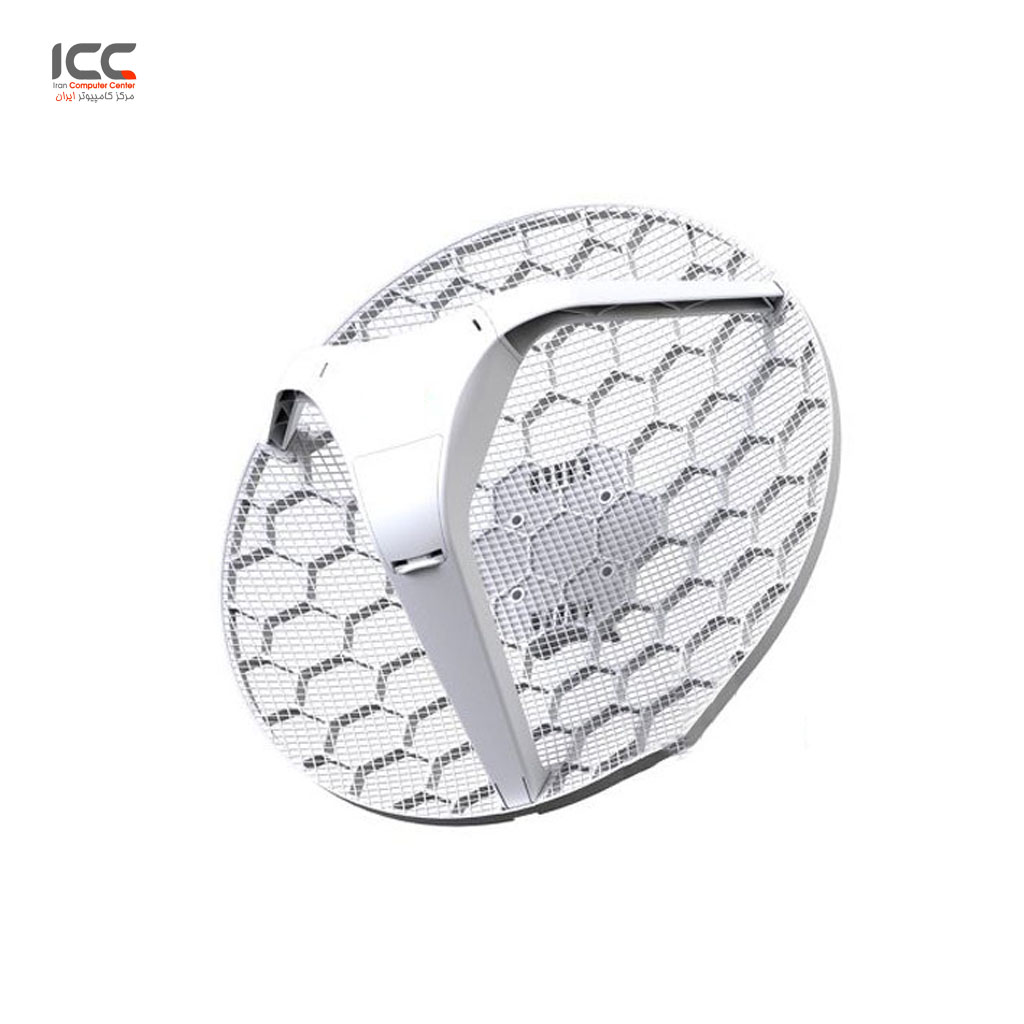 ویژگی های محصول: Type : Antenna Mikrotik CPU nominal frequency : 600 MHz CPU core count : 1 Size of RAM : 64 MB 10/100 Ethernet ports : 1 Wireless standards : 802.11a/n Wireless chip model : AR9344 PoE in : Yes Supported input voltage : 11 V - 30 V Dimensions : Ø 391 x 222 mm; package 450 x 450 x 145 mm Operating System : RouterOS Tested ambient temperature : -40 to 70° C License level : 3 Antenna gain DBI : 24.5 CPU : AR9344 Max Power consumption : 6W Number of chains : 2 Storage type : FLASH Storage size : 16 MB