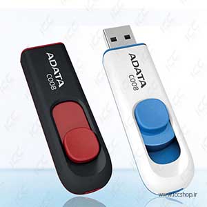 فلش مموری ای دیتا مدل C008 دارای تنوع رنگی از جمله آبی-سفید و قرمز-مشکی می باشد که در حجم های 4، 8، 16، 32 و 64 گیگابایت طراحی شده است.