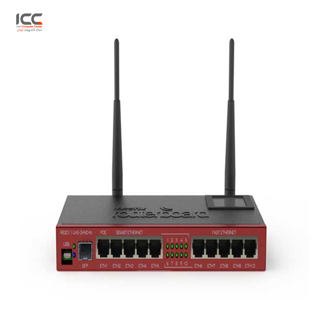 ویژگی های محصول : - Type : Wireless Router Mikrotik - CPU nominal frequency : 600 MHz - SFP DDMI : Yes - CPU core count : 1 - Size of RAM : 128 MB - 10/100 Ethernet ports : 5 - 10/100/1000 Ethernet ports : 5 - Wireless standards : 802.11b/g/n - Wireless chip model : AR9344 - Number of USB ports : 1 - Power Jack : 1 - PoE out : Yes - PoE in : Yes - Supported input voltage : 8 V - 30 V - Voltage Monitor : Yes - PCB temperature monitor : Yes - Dimensions : 214mm x 86mm for PCB - Operating System : RouterOS Operating temperature range : -35C to +65C - License level : 5 - Antenna gain DBI : 4 - CPU : AR9344 - Max Power consumption : 11W - SFP ports : 1 - USB slot type : microUSB type AB - Number of chains : 2 - Serial port : RJ45 - Storage type : NAND - Storage size : 128 MB